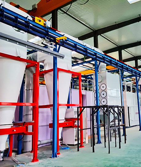 Powder coating line is an automated production line that achieves surface coating through electrostatic spraying. It is commonly used in industries such as household appliances, warehouse shelving, automotive components, etc.
